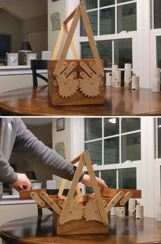 «Я сделал сворачивающийся ящик для инструментов… Также мне пришлось сделать крышку для последнего отделения, чтобы вещи не высыпались.»