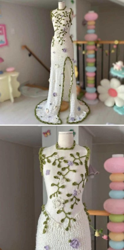 Вы думаете, что вязание крючком — это бабушкины салфетки и бесконечные шарфы? О, как вы ошибаетесь. Добро пожаловать в мир, где пряжа становится платьем, букеты — вечными, а собаки попадают на гобелены, сделанные вручную. Эти работы не просто милые — они гениальны. На просторах интернета тысячи мастериц и мастеров делятся результатами своего творчества, которое больше напоминает художественные проекты, чем обычное рукоделие. Свадебные платья, цветы, подарки на память и даже одежда — всё это связано крючком, с душой и с невероятным терпением.
