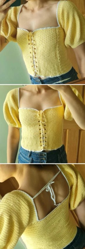 Если бы лето можно было надеть, оно выглядело бы примерно так. Воздушные рукава, мягкая пряжа и кокетливые завязки делают этот топ настоящим фаворитом сезона. Уют и женственность — в каждом стежке.