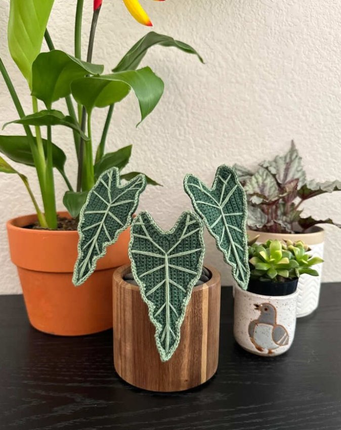 У кого-то алоказия вянет за неделю, а у кого-то — связана крючком и стоит годами. Эти листья — мечта каждого любителя зелени с хронической забывчивостью. Вода не нужна, только восхищённые взгляды.