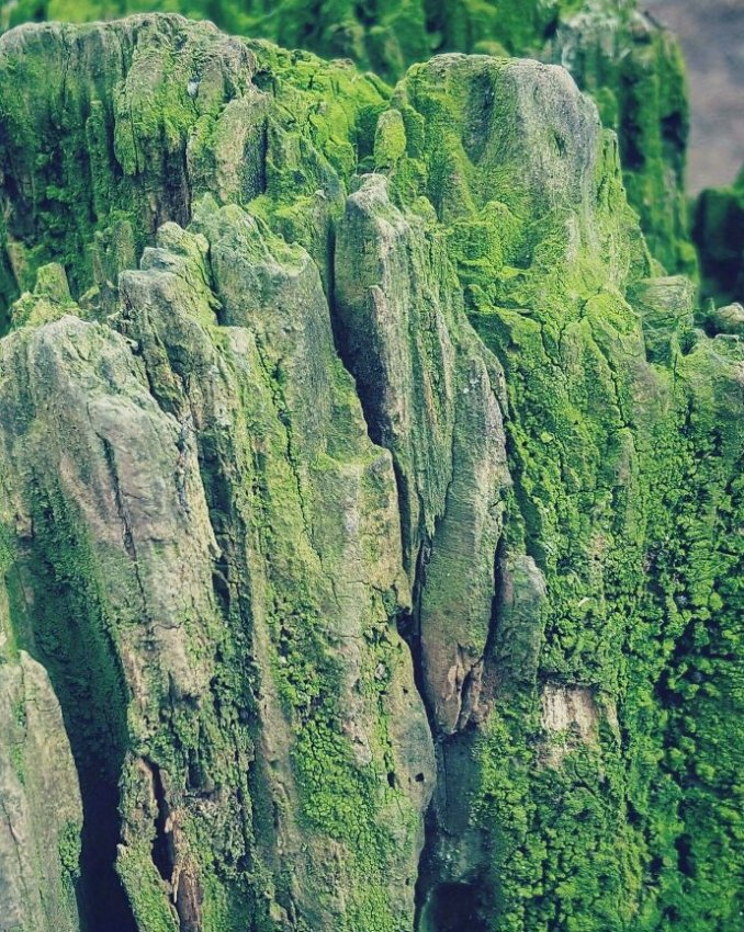Потрясающие скалы, покрытые мхом… А, нет. Это пень. Но такой, что хочется оставить палатку и поселиться на нём — как минимум, визуально.