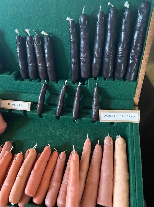 Эти свечи выглядят так реалистично, что хочется проверить, всё ли в порядке с соседями. Они пугают не только внешним видом, но и тем, что кому-то пришло в голову сделать их. Воск, форма и идея — всё работает против душевного равновесия. Такой декор подойдёт разве что для тематического ужина у ведьмы.