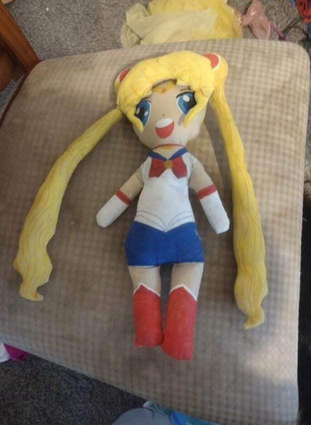 Героиня любимого аниме пережила трудные времена — и явно не восстановилась. Её лицо несёт отпечаток неудачной попытки творчества, где иголка победила талант. Волосы словно нарисованы детской тоской по пропорциям. Игрушка пугает даже при выключенном свете.
