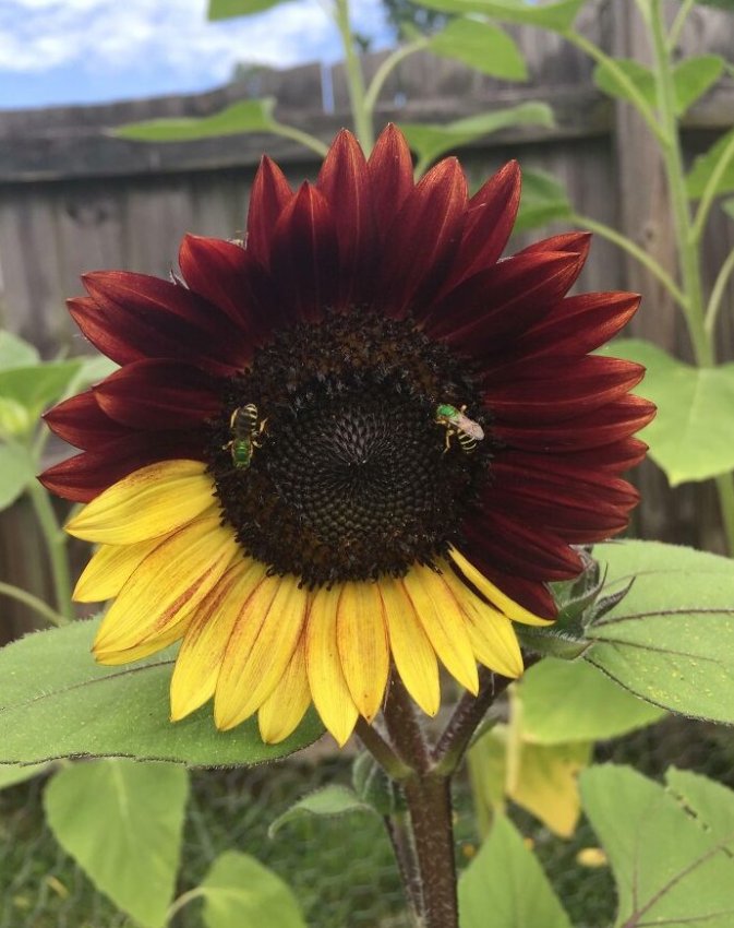 Когда ты и солнышко, и закат одновременно — и почему бы, собственно, не быть? Этот подсолнух будто переживает личностный кризис, но делает это красиво. Пчёлы не жалуются, им главное — чтобы пыльца была.