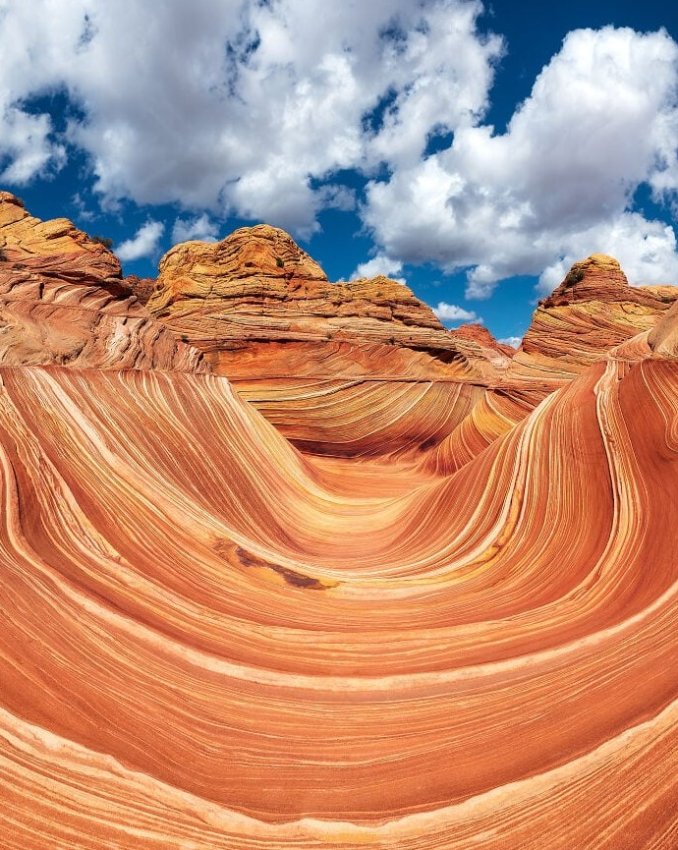 Пейзаж, нарисованный природой с такой точностью, что даже гугл-карта зависнет от восторга. Эти линии будто придуманы дизайнером, уставшим от прямых углов. «Волна» в Аризоне — одно из тех мест, где камень выглядит мягче шёлка.