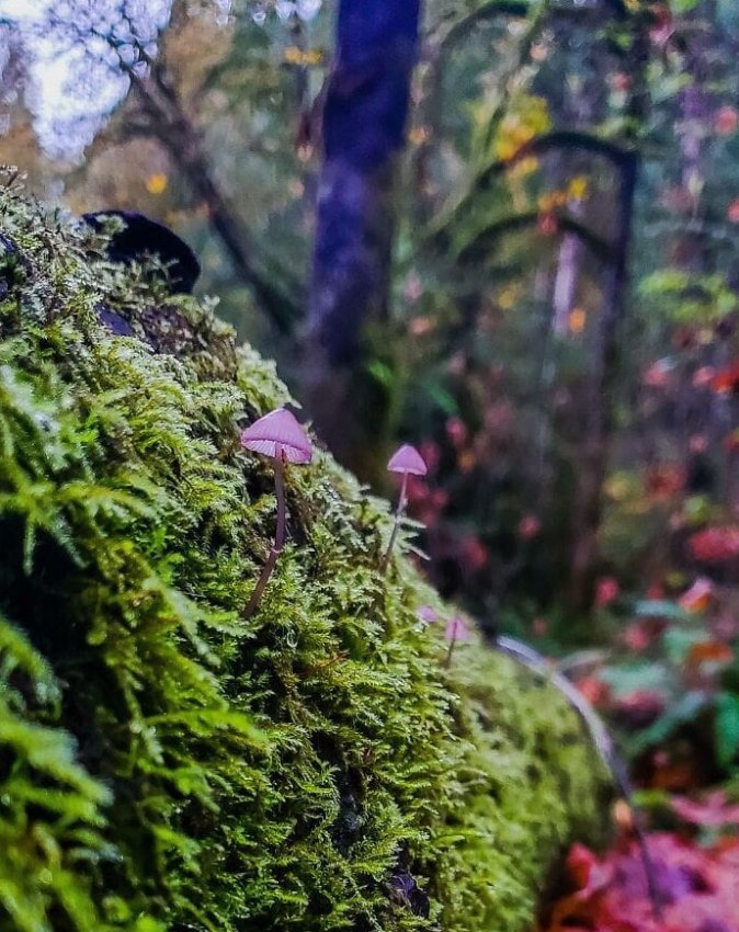 «Нашел эти маленькие грибочки на покрытом мхом бревне в лесу»