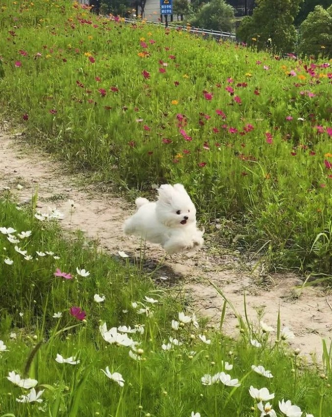Кажется, это не собака, а одуванчик с турбореактивным двигателем. Летит по дорожке, как будто за ней гонится ветер. Или просто настроение у неё — «всё могу».