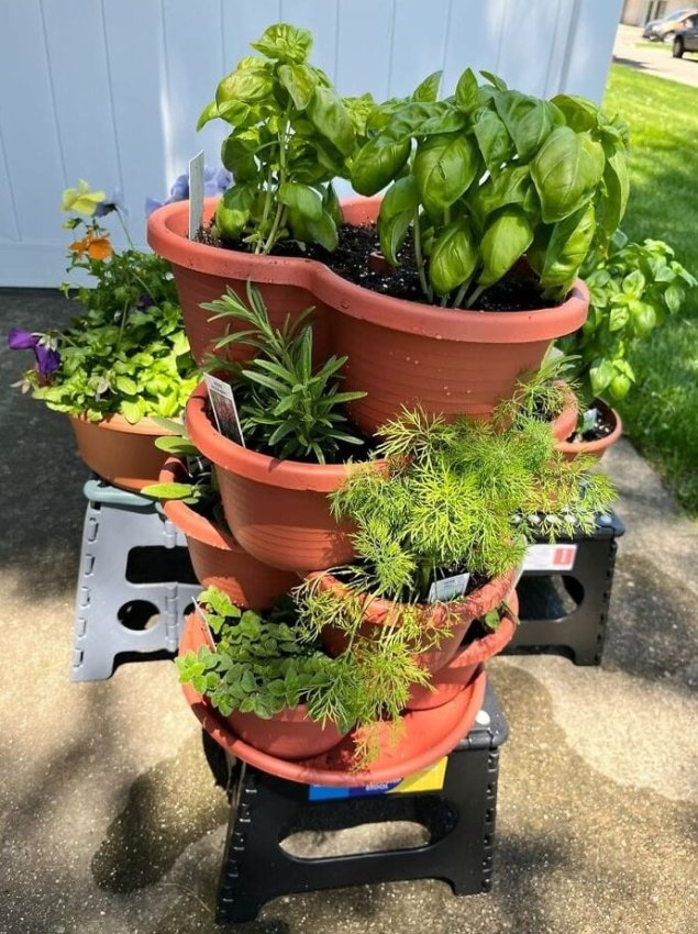 Это великолепное штабелируемое кашпо — способ показать ограниченному пространству на вашем патио, что все возможно