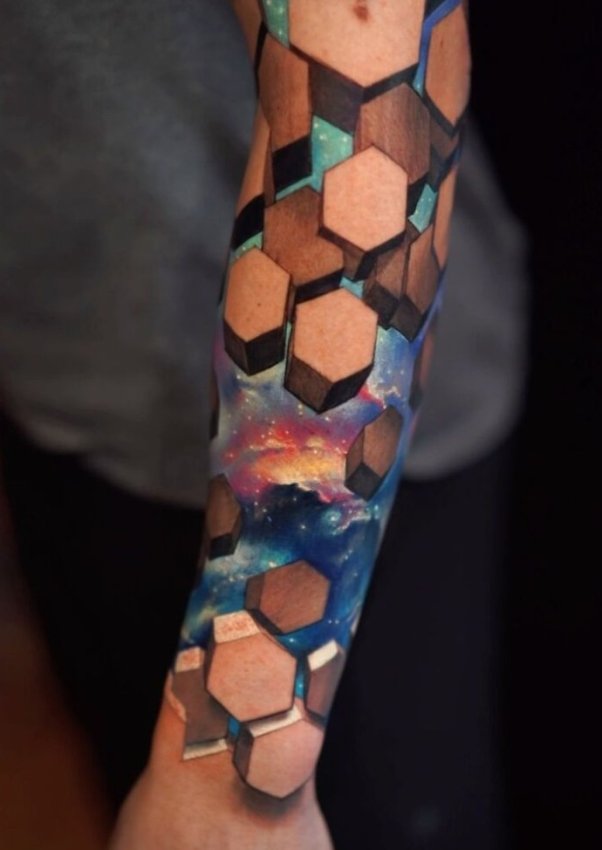 Это не просто татуировки — это оптические иллюзии, при взгляде на которые мозг сначала подвисает, а потом спрашивает: «Это точно реально?» Джесси виртуозно использует геометрию, тени и перспективу, превращая человеческое тело в оживающий арт-объект. Иногда кажется, что если надавить на рисунок — он начнёт вращаться, засасывать или хотя бы заиграет звёздной пылью. Сам художник говорит, что вдохновляется идеей глубины — как физической, так и философской. Он видит тело не как холст, а как портал, через который можно передать ощущение космоса, бесконечности и даже немного тревожной фантастики. Готовы ли вы взглянуть внутрь?