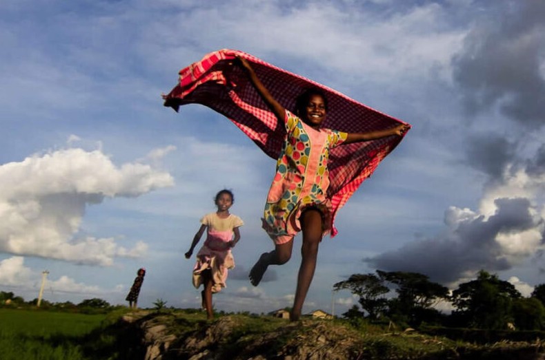 Пёстрый платок превращается в самолет без двигателя. Подружки бегут быстрее тени и выбирают курс прямо по облакам. Бензин здесь — смех и упрямый ветер. И каждый шаг — это взлёт.