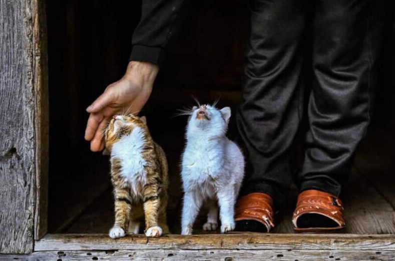 Два специалиста по муркотерапии проходят техосмотр у одной руки. Мурчание звучит в стерео, вибрации соответствуют стандарту «блаженство+». Премию за усердие получат оба — по дополнительной минутке чесалова.