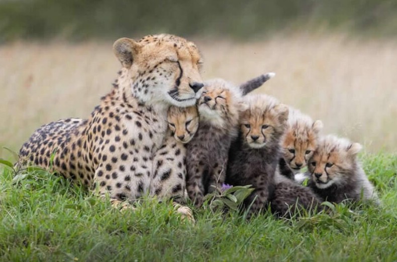 Мама-гепард на минуту превратилась из молнии в мягкую подушку. Крошки выстраиваются в очередь за обнимашками — самый надёжный щит саванны. Мир вокруг подождёт: у семейной нежности приоритет.