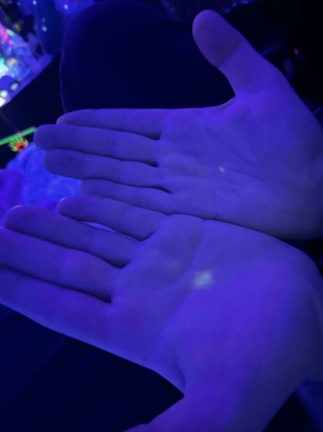 Странные точки на руках моего парня, которые видны только в ультрафиолетовом свете?