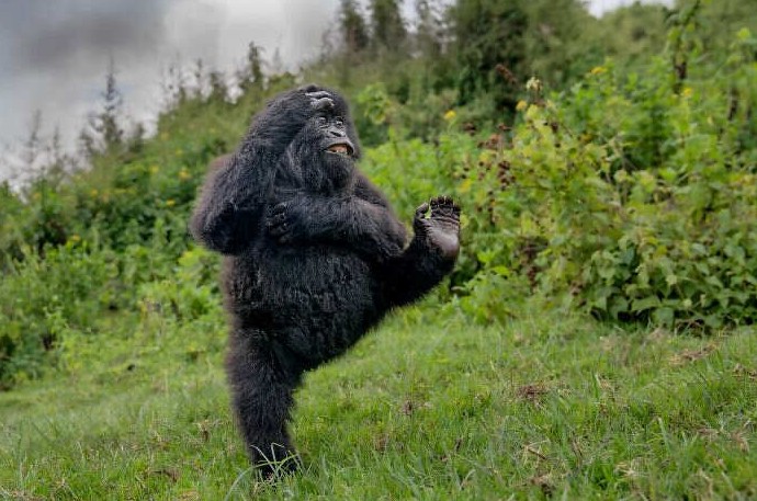 «Я сделал эту фотографию во время поездки в Руанду в начале этого года, где мы провели четыре незабываемых дня, исследуя туманные горы Вирунга в поисках семей горилл. В тот день мы наткнулись на большую группу, собравшуюся на поляне: взрослые особи спокойно искали корм, а молодые охотно играли. Один молодой самец, казалось, особенно хотел продемонстрировать свои акробатические навыки: пируэты, сальто и удары ногами в воздухе. Наблюдать за его выступлением было настоящим удовольствием, и я очень рад, что запечатлел его радостный и игривый нрав на этом снимке.»