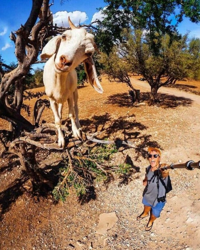 Коза сделала фотобомбинг с дерева и выиграла интернет