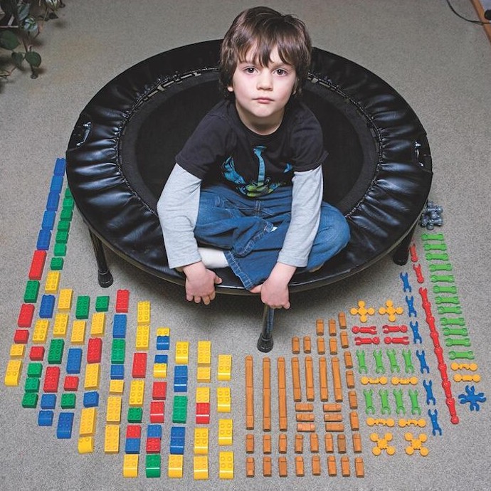 Математика в цвете! Сотни деталей конструктора выстроены в идеальные ряды — синие, жёлтые, красные, зелёные, оранжевые. Этот маленький перфекционист превратил игру в искусство систематизации. Мини-батут служит троном для юного архитектора порядка. Каждая деталь на своём месте, каждый цвет в своей группе — детский ОКР или задатки будущего инженера?