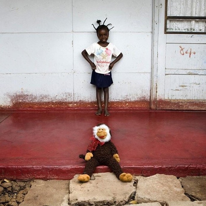 Один потрёпанный плюшевый примат на розовом одеяле — единственный друг этого ребёнка из африканской деревни. Стены из глины и палок, отсутствие электричества, но есть самое главное — любимая игрушка. Обезьянка явно пережила немало приключений и стирок, но продолжает верно служить своему хозяину. В мире, где нет магазинов игрушек, одна обезьяна дороже сотни новых кукол.