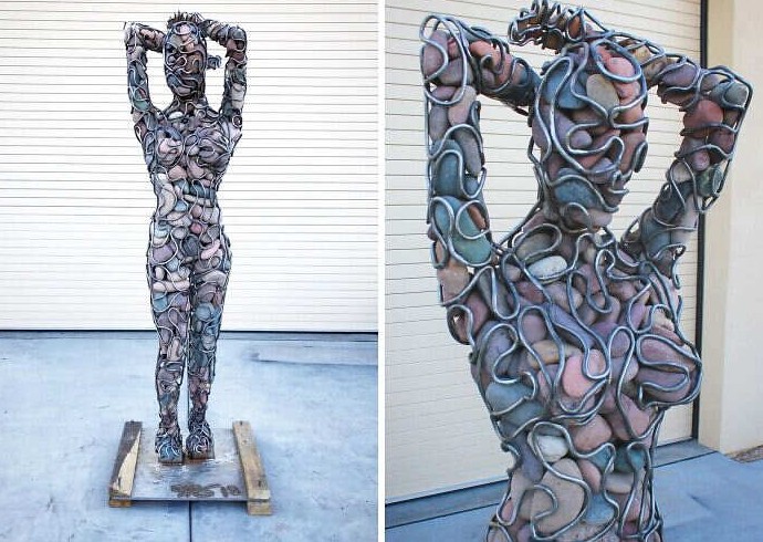 Когда у тебя есть сварочный аппарат, обрезки металла и художественное видение — рождаются такие монументальные фигуры! Эта скульптура человека в размышлении собрана из сотен металлических колец и фрагментов, создавая эффект ажурной, почти воздушной формы. Автор превратил холодный металл в нечто органичное и живое, где каждый элемент работает на общую композицию. Это уже не просто поделка — это серьезная скульптура, достойная современной галереи или парка!
