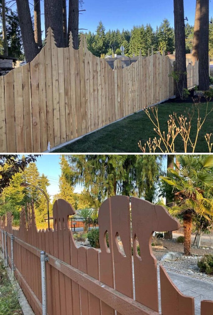 Кто сказал, что забор должен быть скучным? Этот автор превратил обычное ограждение в силуэтную инсталляцию с медведем и хвойными деревьями. Днем это стильный элемент ландшафтного дизайна, а на закате — настоящий театр теней в духе дикой природы. Соседи, которые раньше жаловались на «слишком высокий забор», теперь фотографируют его для Instagram. Вот что значит превратить необходимость в произведение искусства!