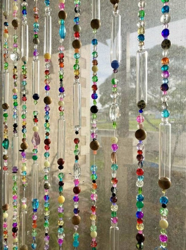 Забудьте об обычных шторах — эта переливающаяся занавеска превращает каждый солнечный день в праздник света и цвета! Сотни разноцветных бусин нанизаны на нити, создавая игру бликов, которая меняется с каждым движением воздуха. Автор потратил, вероятно, десятки часов на нанизывание каждой бусинки, но результат стоит каждой минуты. Теперь окно — это не просто проем в стене, а калейдоскоп, через который мир выглядит ярче и волшебнее!