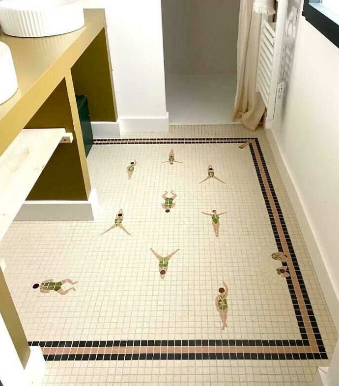 «Пловцы», мозаика для пола ванной комнаты, созданная французской мастерской Suzanne Manufacture