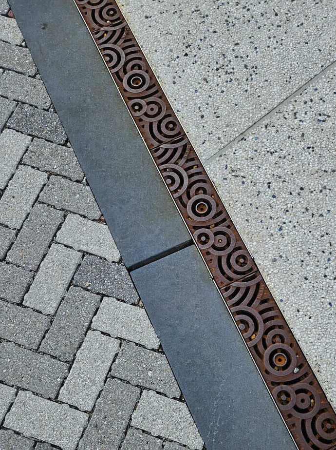 Водосточные решетки, имитирующие капли дождя, падающие на воду