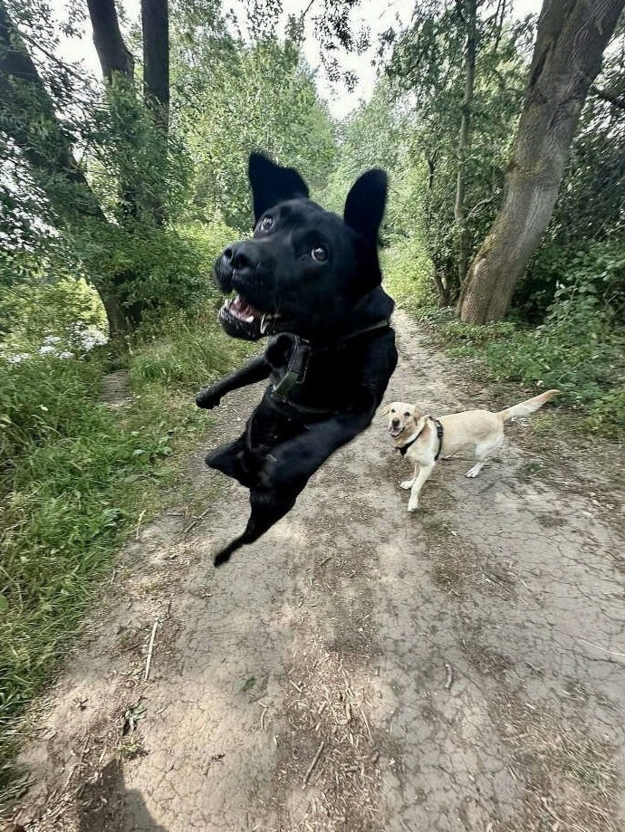 План был простой: спокойная прогулка в парке. Но Рекс решил, что это идеальный момент для атаки в стиле хоррор-фильма категории 18+. Золотистый ретривер сзади уже мысленно пишет заявление в полицию на своего психованного друга.