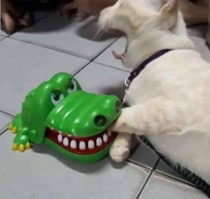 Собака пыталась договориться мирно, предложила крокодилу свою миску и любимую игрушку. Но крокодил оказался радикалом и потребовал ВСЕ: дом, хозяина и эксклюзивные права на диван. Сейчас идет силовая фаза конфликта, и никто не собирается сдаваться.
