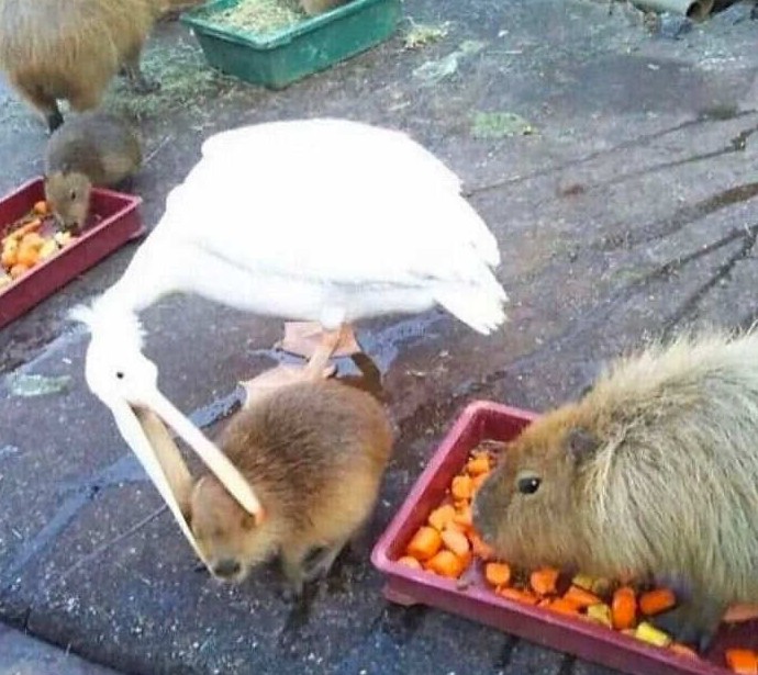 Птица: «Извините, просто проходила мимо!» Капибара внизу: «приглушенные крики отчаяния«. Когда обед превратился в экстремальный вид спорта, а соседи совершенно не уважают концепцию личного пространства.