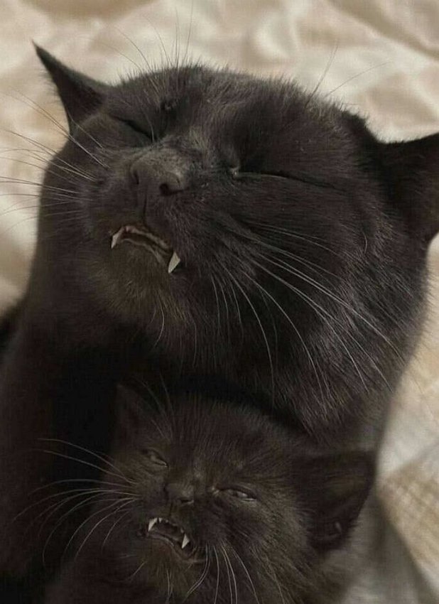 Когда фотограф сказал «Скажите «чииииз!», эти двое поняли задание по-своему. Видимо, в их семье принято улыбаться всеми зубами — включая клыки. Если бы у Дракулы были домашние питомцы, они выглядели бы именно так: величественно, грозно и абсолютно уверены в своем превосходстве над человечеством.