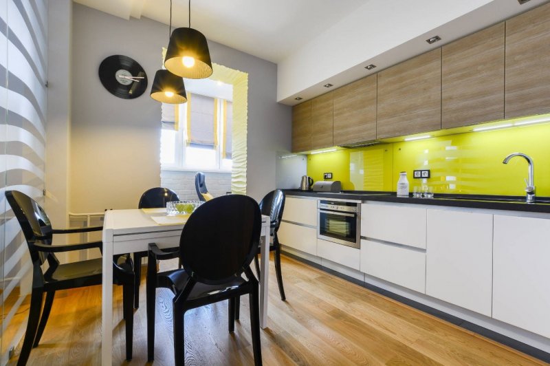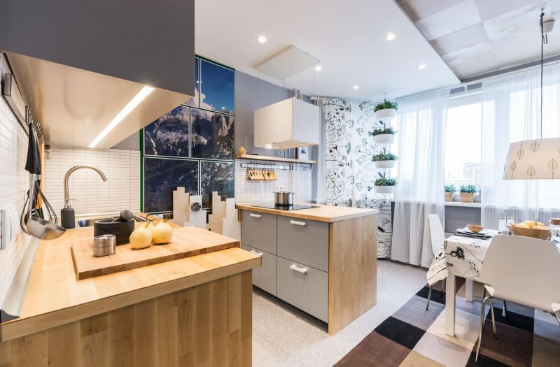 Размеры кухни в большинстве типовых квартир или частных домов не превышают 8 м2, поэтому если имеется возможность, отличной идеей является объединение помещения с балконом или лоджией. Этот способ позволяет территориально расширить кухонную площадь, сделать ее более комфортной. Часть перегородки, которая ранее была подоконником, можно переоборудовать в барную стойку, либо балконное пространство использовать в качестве столовой.