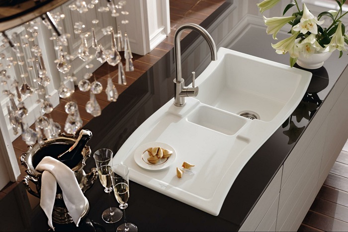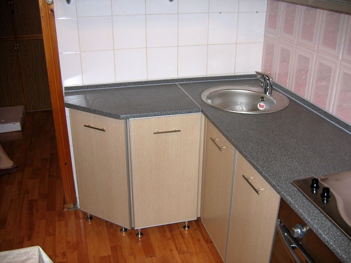 Раковина, расположенная в углу, очень неудобная. / Фото: storika.ucoz.ruПри выборе раковины очень важно обращать внимание на ее размер. Маленький экземпляр подойдет лишь в том случае, если вы практически не готовите дома, предпочитая питаться в кафе или заказывать еду с доставкой. Во всех остальных случаях необходимо покупать глубокую раковину, которая сможет вместить в себя гору грязной посуды, чтобы она не захламляла рабочую поверхность.Как вариант, купить раковину с двумя отделениями, одно их которых будет предназначено для посуды, а второе – для мойки овощей. А если раковина будет оснащена своеобразным продолжением, как на фото, то у вас сразу появится лишнее место для расположения горячей посуды.