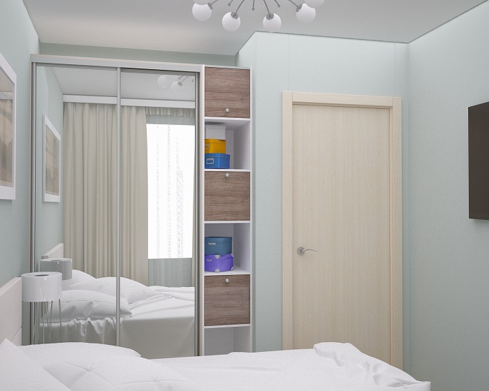 Шкаф с зеркальными дверцами визуально расширит пространство. / Фото: Interierdoma.zzz.com.uaЗеркала, так же как и светлые оттенки, способны увеличивать пространство, отражая свет. Поэтому обязательно позаботьтесь об их наличии в квартире. Главное – подойти к этому вопросу с умом, и не переусердствовать с количеством. В спальне можно поставить шкаф-купе с зеркальными дверцами или разместить туалетный столик с зеркалом. Кроме того, этот элемент должен присутствовать в ванной и в прихожей не только из-за своей практической составляющей, но и чтобы комнаты казались больше.