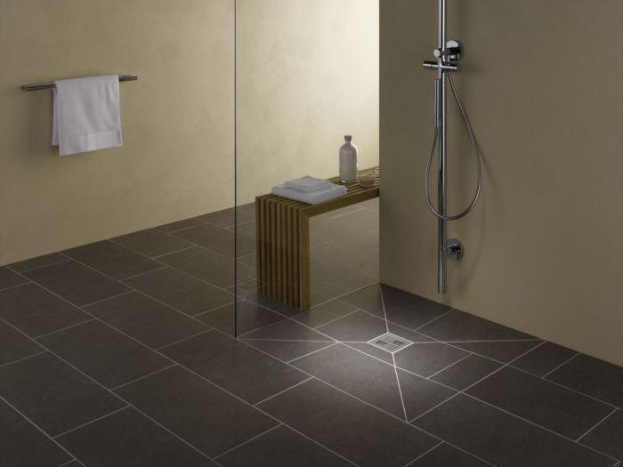 Есть разные варианты. |Фото: easydrain.de.Первая и самая главная причина запрета заключается в том, что для установки душ-трапа необходимо выполнять поднятие уровня пола. Его новая высота должна будет не только прятать коммуникации, но и обеспечивать достаточный уклон для стекания воды. В конечном итоге, такое улучшение будет создавать лишнюю (а иногда и вовсе недопустимую) нагрузку на перекрытия дома. Правда, актуально это преимущественно для домов старых моделей.