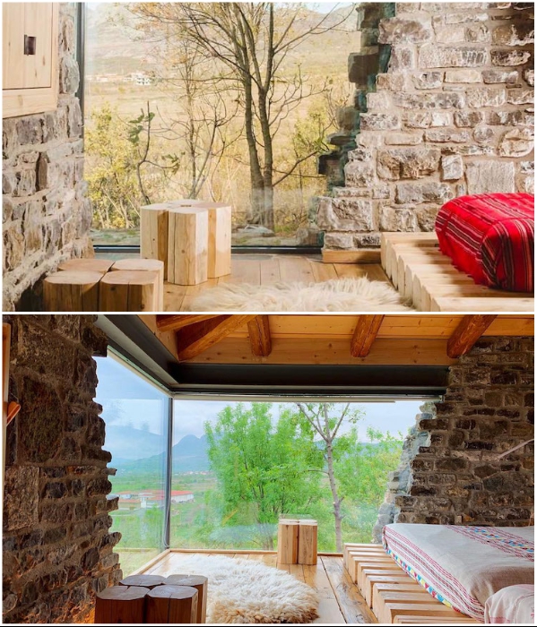 Гости двух номеров могут наслаждаться восхитительным видом, открывающимся за стеклянной стеной (Mrizi i Zanave Agroturizеm, Албания). | Фото: instagram.com/ © mrizi_i_zanave, plisatelier.