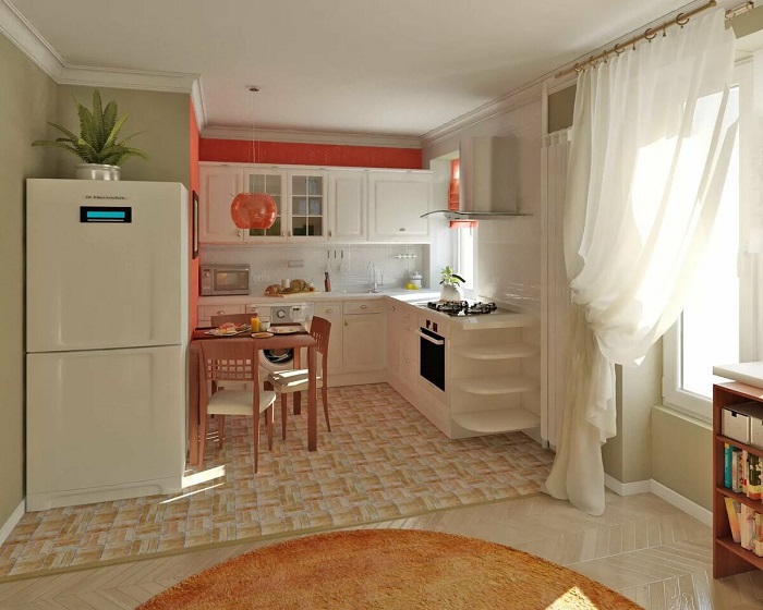 Объедините кухню с гостиной. / Фото: Dizainexpert.ruУвы, хрущевка в первоначальном виде не сможет стать для вас воплощением мечты об уютном и комфортном жилье. В любом случае придется делать капитальный ремонт. И первым его пунктом должна стать перепланировка. Чтобы в квартире появилось больше свободного места, необходимо убрать стены. Не все, конечно, но часть из них точно. Например, узкий коридор можно расширить за счет кладовки, а крохотная кухня прекрасно объединяется с гостиной. Однако в этом случае очень важно осуществить правильное зонирование пространства, чтобы было четкое разделение рабочей, обеденной и зоны отдыха.