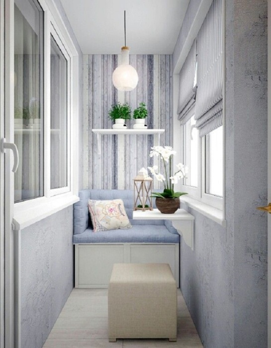 Сделайте на балконе зону отдыха. / Фото: Budnymujchin.ruБалкон незаслуженно превращают в кладовку, хотя если его застеклить и утеплить, он вполне может стать отличным дополнением любой комнаты, прибавив несколько метров полезной площади. На балконе можно сделать:• зону для отдыха, разместив мини-диван и журнальный столик;• домашний офис – все, что вам понадобится – рабочий стол, удобное кресло, несколько полок для книг и канцелярии, а также ноутбук;