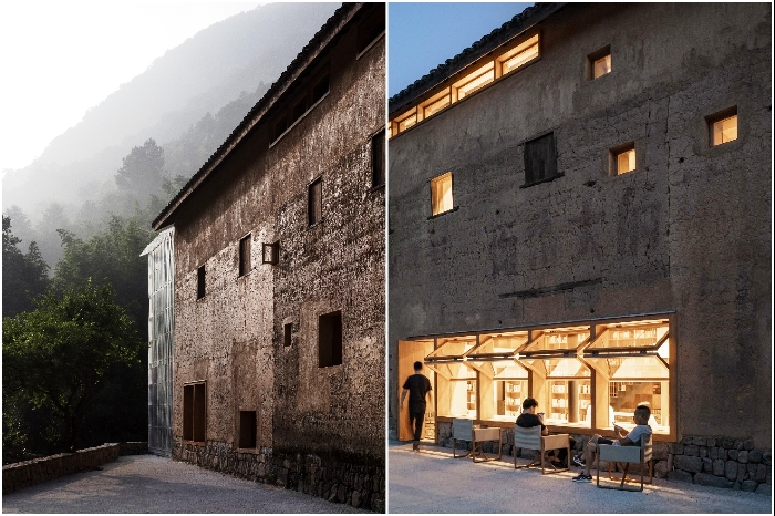 В китайской провинции Чжэцзян открылся капсульный отель («Liuyue Capsule Hotel»). | Фото: dezeen.com.Заброшенное странное здание, расположенное в живописном месте неподалеку деревни Цинлунву (Qinglongwu), было решено отреставрировать и создать необычный отель. С этой целью владельцы обратились в архитектурную компанию Tao+C. Перед специалистами компании была поставлена довольно сложная задача, им предстояло из обычного глинобитного дома с земляным полом сделать современный гостиничный комплекс под названием «Liuyue Capsule Hotel». В него должны были входить 20 отельных номеров, лаунж-зоны, библиотека и книжный магазин.