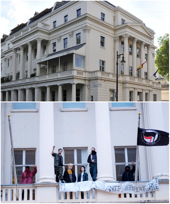 Сквоттеры захватили особняк бывшего топ-менеджера «Газпрома» в Лондоне (2014 г.). | Фото: theguardian.com.До 2012 года такой произвол царил и в Великобритании, причем тоже на законных основаниях любой маргинал мог нагло забрать землю, завод или дом. К счастью, домовладельцев такой произвол был прекращен, хотя это касается только жилой недвижимости, а вот склад, офис или фабрику сквоттеры могут беспрепятственно заселять, если они пустуют.