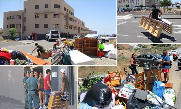 В Сан Исидро был захвачен новый 40-квартирный дом, который уже принудительно очищен от «okupas» (Испания). | Фото: tenerifetoday.ru.А зачем, если его можно просто взять бесплатно (отжать!)? Остается только побродить по благополучным районам, выбрать то, что больше понравится, и дождаться, когда владельцы уедут на пару дней в гости или на отдых. И тогда забираешься в дом/квартиру, меняешь замки и живешь припеваючи на всем готовом и абсолютно бесплатно. Зато законным владельцам придется месяцами оббивать пороги судов, страховых компаний и адвокатов, чтобы вернуть свою недвижимость.Мало того, что ему надо будет потратить кучу средств на судебные издержки и юридическую поддержку, так еще и за то время, что самовольные поселенцы будут жить в его доме, хозяин обязан платить коммуналку и ипотеку (если она есть). В противном случае отсудить свое же жилье точно не удастся.