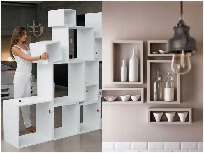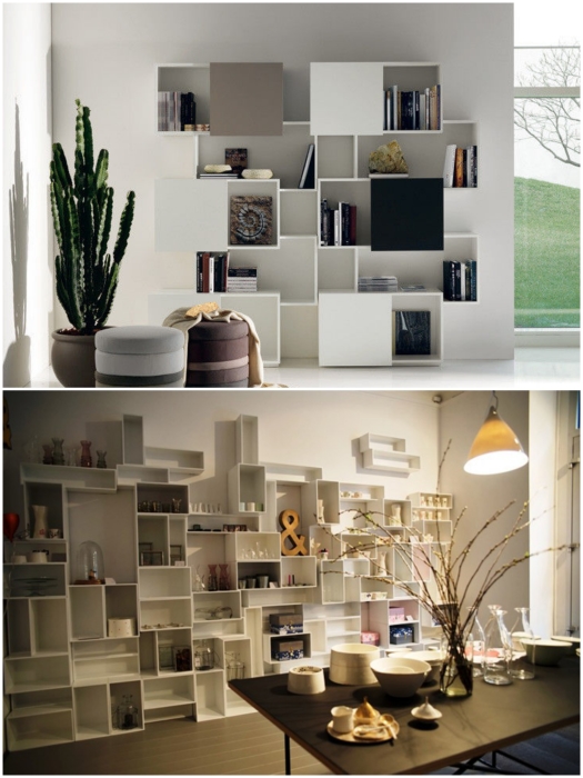 Модули для полок могут разной глубины и размера, что облегчает создание композиций. | Фото: domnomore.com/ italstroy.ru.