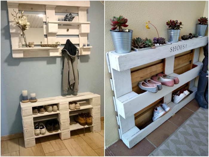 Открытые полки в интерьере прихожей/коридора одинаково хорошо смотрятся и как украшение, и как место для хранения вещей. | Фото: dizainexpert.ru/ dekormyhome.ru.