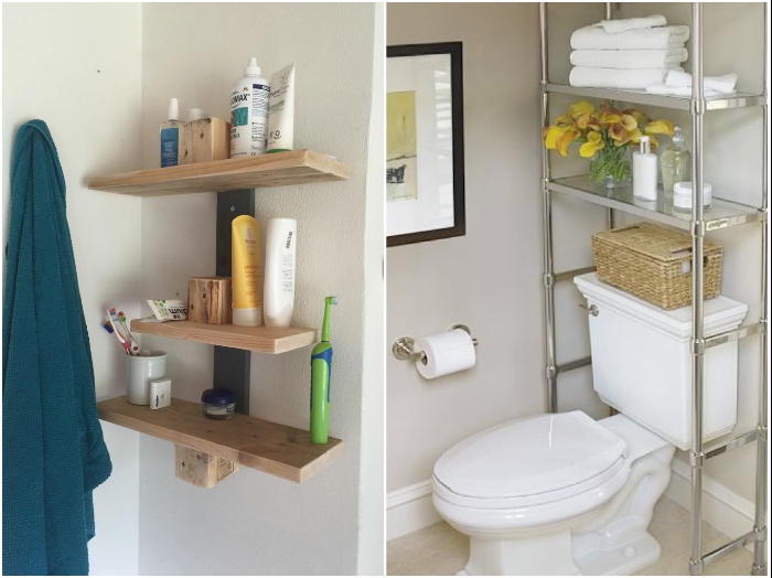 В ванной комнате на открытых полках следует размещать только средства гигиены первой необходимости. | Фото: yandex.ru/ pinterest.com .Согласитесь, что средства гигиены в ванной, которые используют постоянно, должны быть под рукой, а вот те, что применяют время от времени – лучше спрятать в шкаф. В противном случае комната будет иметь захламленный вид.