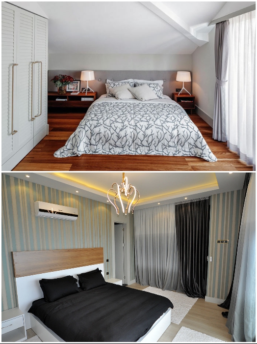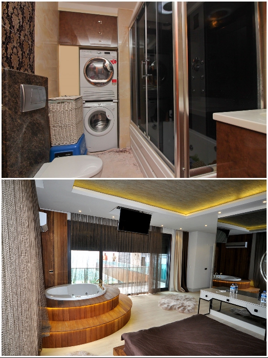 Чем выше уровень жилья, тем больше будет спальня и ванная комната. | Фото: turkeyforfriends.com/ interiorizm.com.В большинстве случаев в современных среднестатистических квартирах спальни делают довольно маленькими, в них помещается лишь двуспальная кровать и шкаф.