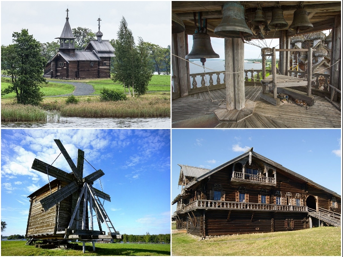 На территории историко-архитектурного музея можно увидеть уникальные памятники деревянного зодчества (Кижи, Респ. Карелия). | Фото: dostop.ru.Не менее знаменита и Церковь Воскрешения Лазаря, срубленная в 1244 г. Ее на остров, где в 1966 г. был организован государственный историко-архитектурный и этнографический музей-заповедник, доставили из Мурома. Также на территории комплекса расположена известная Шатровая колокольня, часовня Михаила Архангела, часовня Успения Пресвятой Богородицы из Васильево, Часовня Трех Святителей Великих из Кавгоры и несколько старинных деревянных домов, мельница, кузница, ремесленное училище.
