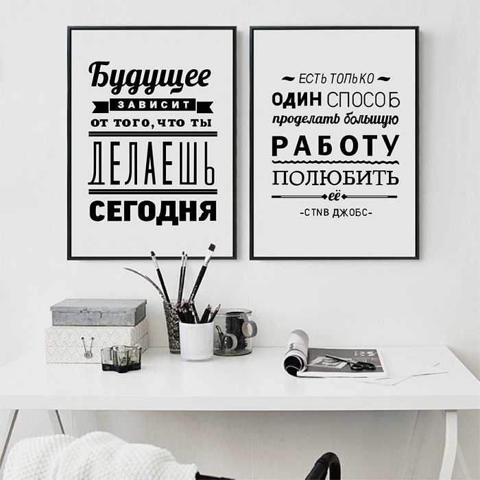 Постеры с цитатами быстро надоедают. / Фото: Likemall.ruВ Европе и Америке этот тренд уже стал моветоном. Окончательную точку в этом вопросе поставил опрос, который провели эксперты компании Samsung. По его итогам, большинство опрошенных признали, что вдохновляющие цитаты в виде постеров очень раздражают и не выполняют возложенной на них эстетической функции. Впрочем, в России этот тренд стал популярен не так давно, поэтому в большинстве квартир подобные постеры еще присутствуют. Однако, как считают дизайнеры, вскоре их заменят стильные картины.