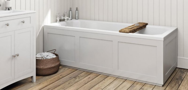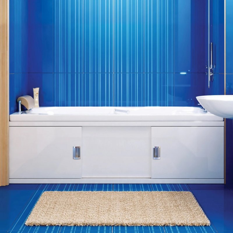 Панели для декорирования фасада ванны могут отличаться не только по конструктивным особенностям, но и по размеру. Выбор изделия зависит от габаритов стандартной чаши. Выделяют типовые и нестандартные модели. Они могут иметь длину от 105 до 190 см.