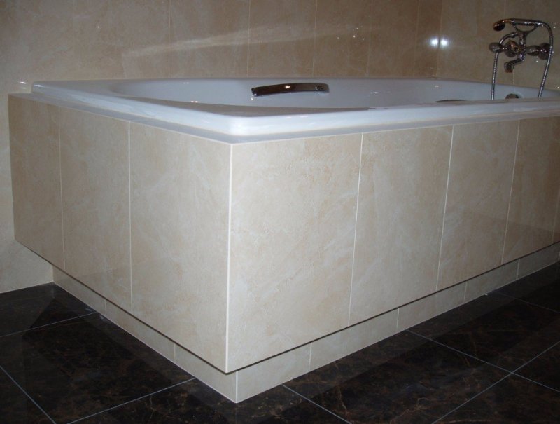 - сложный монтаж – необходимо будет выполнить несколько трудоемких задач – сконструировать каркас, обшить его гипсокартоном и облицевать получившуюся конструкцию плиткой.