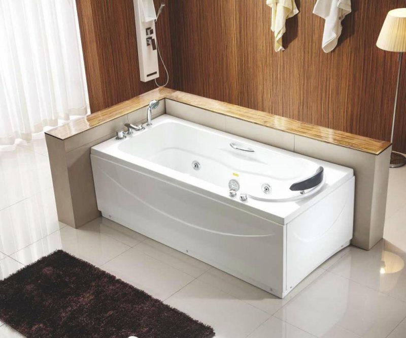 - Можно приподнять экран над полом, отступив несколько см. Изделие встанет на ножки, и у вас больше не будет проблем с размещением ног, зато они появятся с уборкой. Под ванну будет попадать пыль, волосы и другой мусор, а произвести полноценную уборку через небольшую щель практически невозможно.