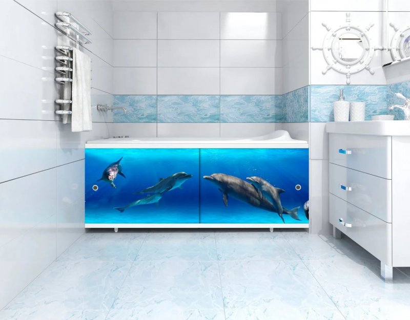 - декоративное «заграждение» не должно мешать комфортному использованию. Если снабдить панель ножками, оставить щель или выемку для ног, будет гораздо удобнее чистить ванну или купать в ней ребенка – пальцы ног не будут упираться в стенку и наклоняться станет гораздо проще. Такие приспособления позволяют быстрее заметить воду, скопившуюся под ванной и устранить ее;